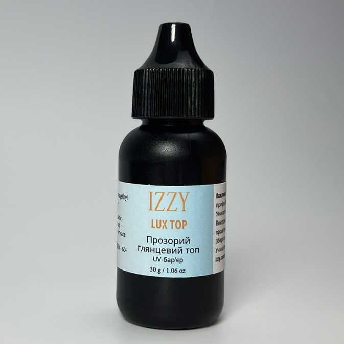 Завершіть свій манікюр ідеально! Глянцевий топ Izzy Lux Top (30г) забезпечує дзеркальний блиск та надійний захист покриття. Завдяки УФ-фільтру він запобігає вигоранню кольору на сонці та під впливом лампи, зберігаючи яскравість пігменту. Топ не має липкого шару, що прискорює процес роботи. Це втілення якості без компромісів та інновації для легкості від IZZY. IZZY — виробник преміум-продукції, що ретельно тестується на носибельність та зручність у роботі перед виходом на ринок. Наш 15-річний досвід дозволяє нам створювати матеріали, яким довіряють тисячі майстрів.